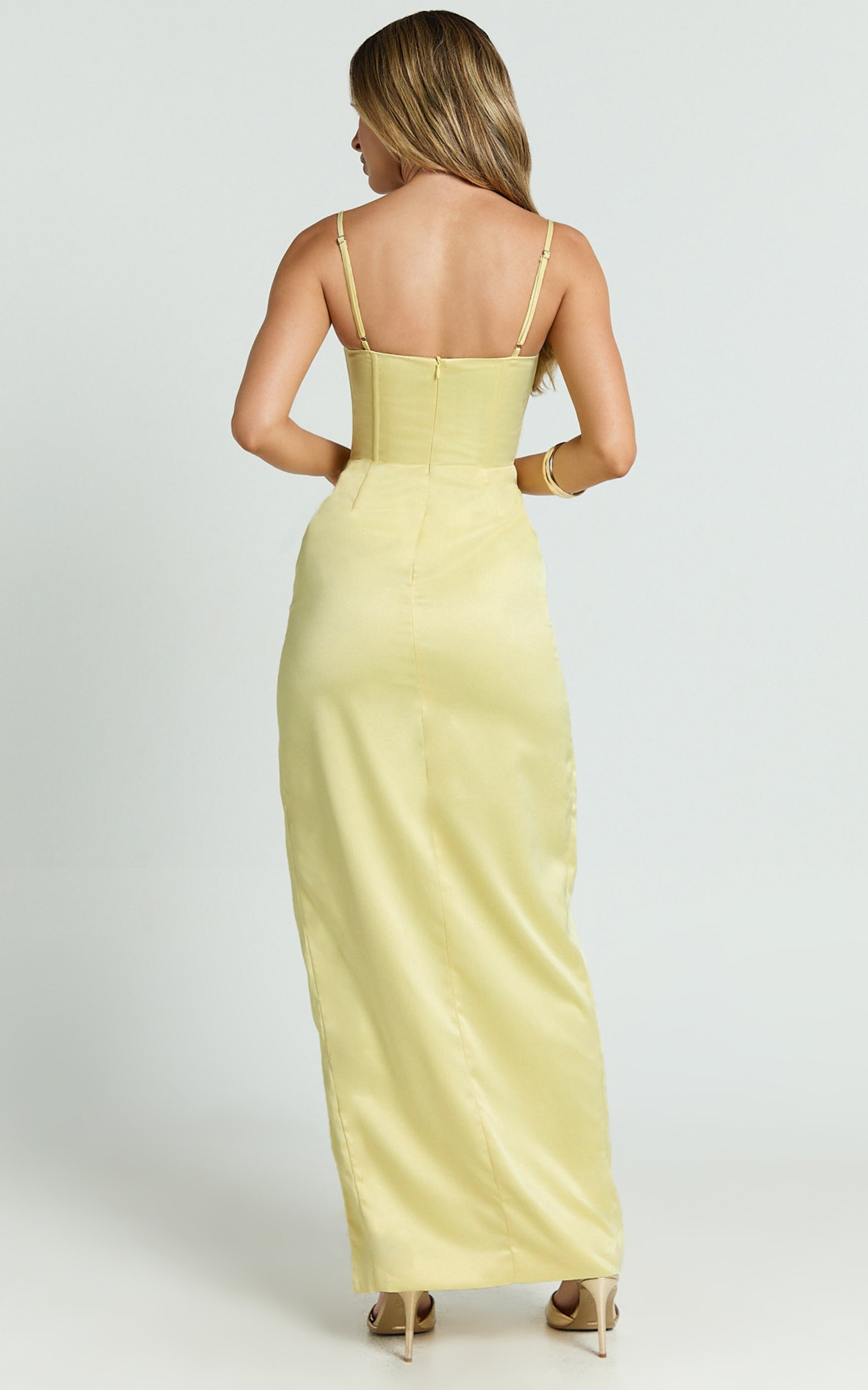 Meet Vinny Maxi Dress , your new going-out MVP. The sweetheart shape frames your décolletage, the leg split elongates, and the vibrant hue pairs effortlessly with Minimalist Sandals and metal-rimmed or metallic sunglasses for that polished finish. Style, snap, repeat.