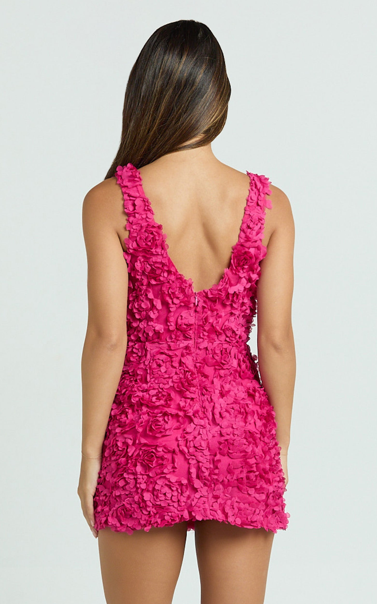 Viola Mini Dress - 3d Floral Plunge Neck Dress In Pink brings the mood for birthdays, date nights, and dressy brunches. Lean into Dresses that dazzle with Rosettes and a Skirt Spectacular vibe, pair with barely-there heels and a micro clutch for a full-glam finish, or add sleek hoops to keep it sweet but statement. Pink never looked this powerful.