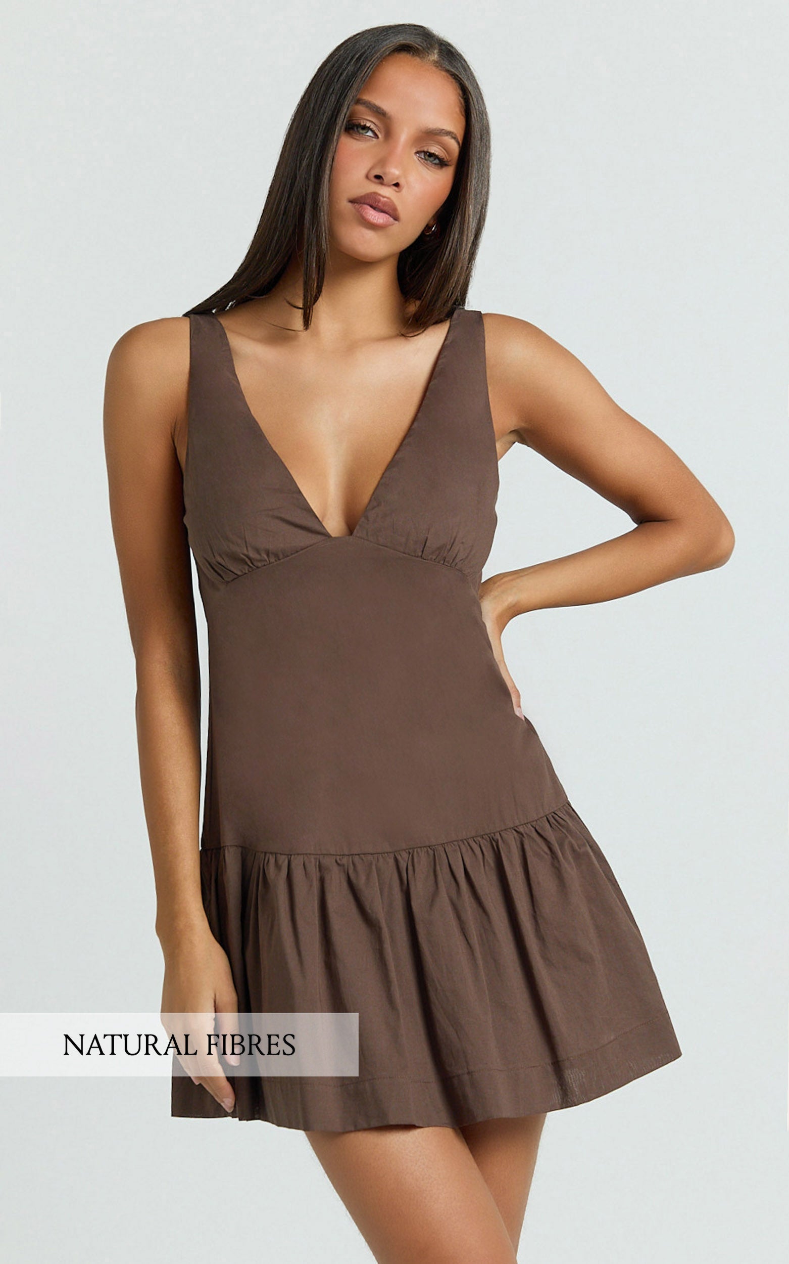 This dropped-waist gathered mini brings quiet elegance with a flirty spin, think soft volume, a relaxed waist that skims just right, and a hem made for movement. The rich brown hue goes from brunch to night-out with ease, serving up a directional take on everyday Dresses that feel forever memorable.