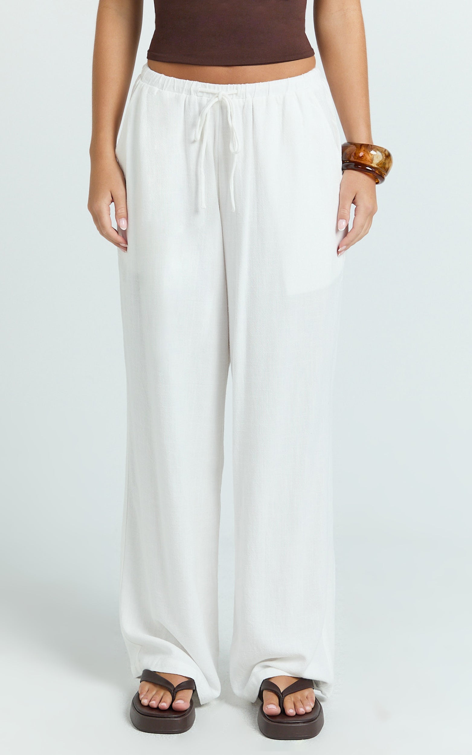 With a clean silhouette and drapey flow, they serve minimal-chic vibes that work from brunch to beach walks, and pair seamlessly with sheer skirts layered moments or a pop of brat green up top for a subtle trend nod.
