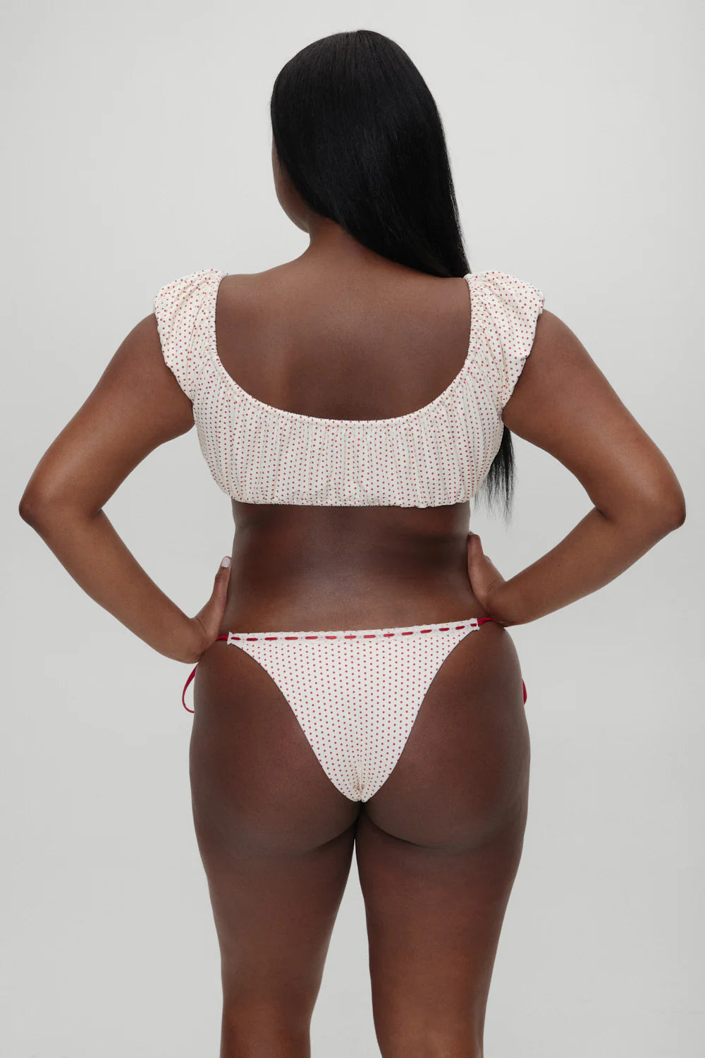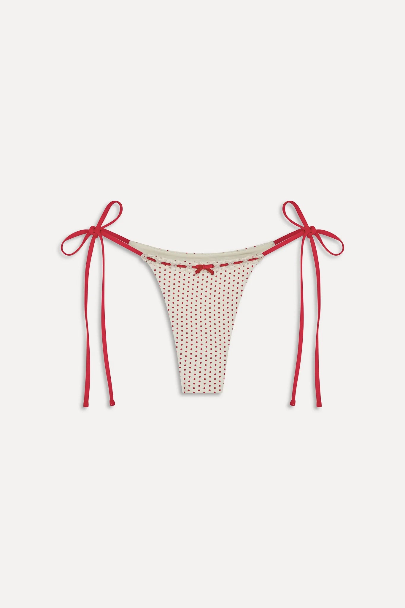 Turn heads in the Mackenzie polka dot bikini bottom. This bikini bottom is a timeless staple that'll never go out of style. Exclusively from the Bella Hadid x Frankies Bikinis collaboration.