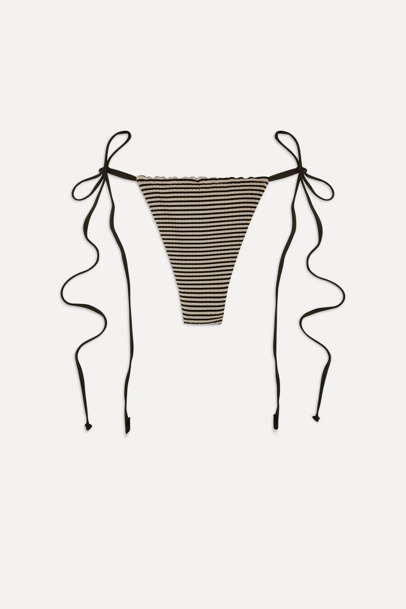 Sexy and slimming with a flirty ruched detail, the Tia bikini bottom takes the ultimate skimpy silhouette to a new level. Exclusively from the Bella Hadid x Frankies Bikinis collaboration.