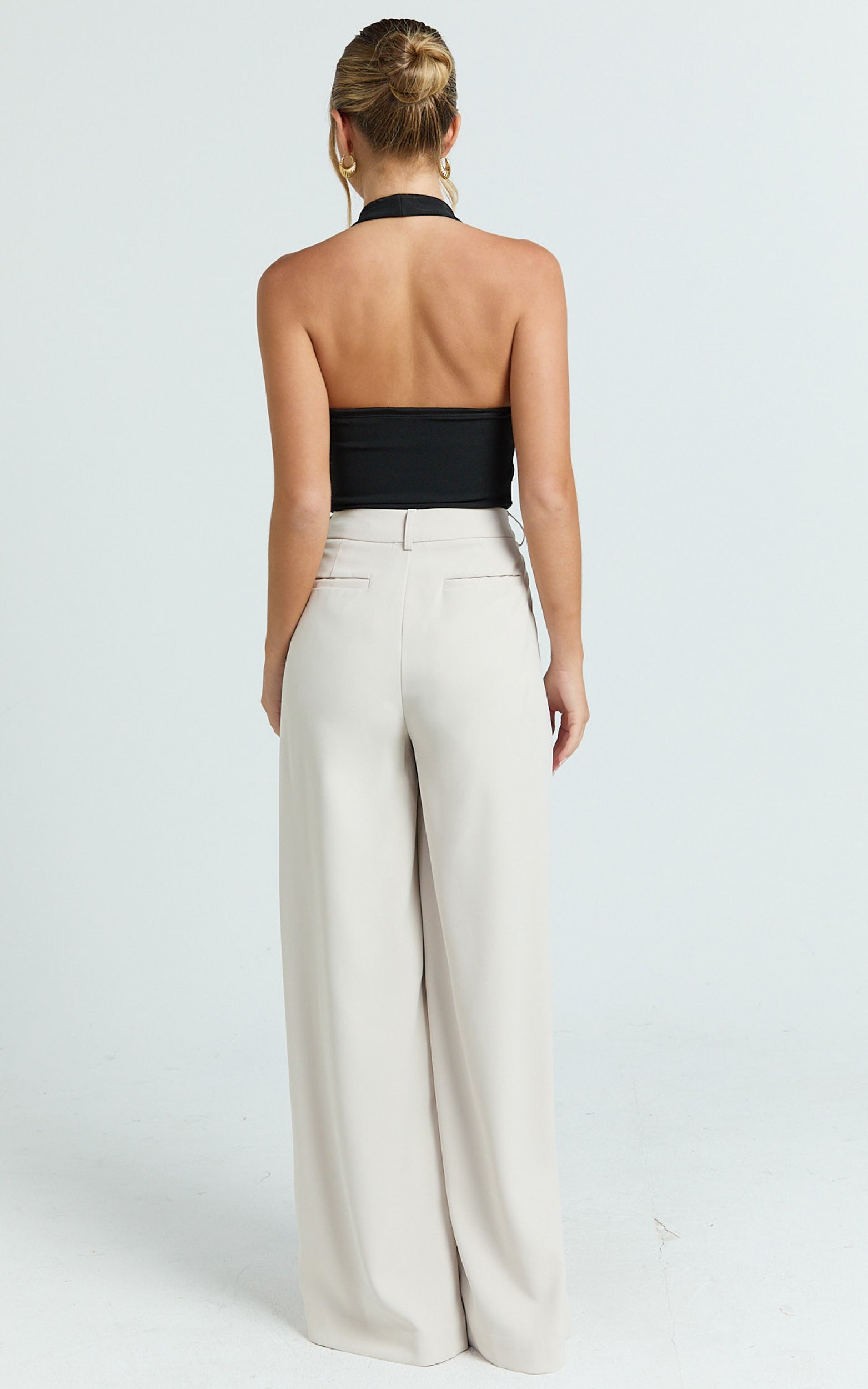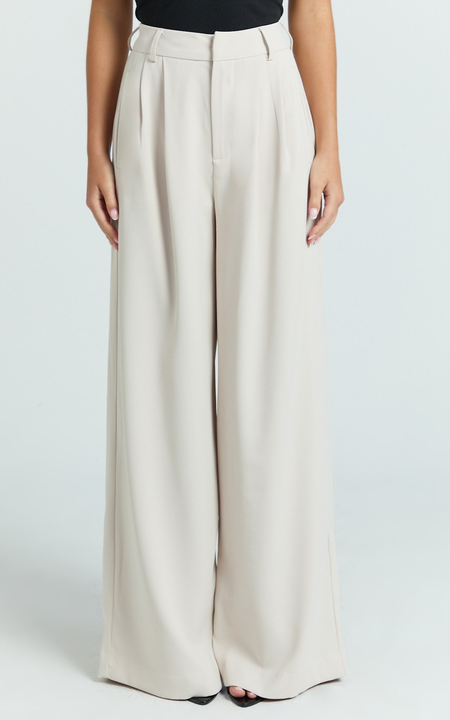 The Xandria Pants bring a relaxed, elongated silhouette with soft pleats and a fluid wide leg that drapes just right. Finished in a stone neutral, they strike the perfect balance between laidback and refined, think model-off-duty energy with a hint of cool tailoring. Easy to dress up or down, they’re your go-to for desk-to-drinks ease. Style Xandria with a crisp polo or fitted tank for clean contrast, then finish with sleek sneakers or strappy sandals depending on the vibe. Add simple hoops and a structured shoulder bag to keep things polished. From brunch to after-hours, these wide-leg pants level up every outfit with modern flow.