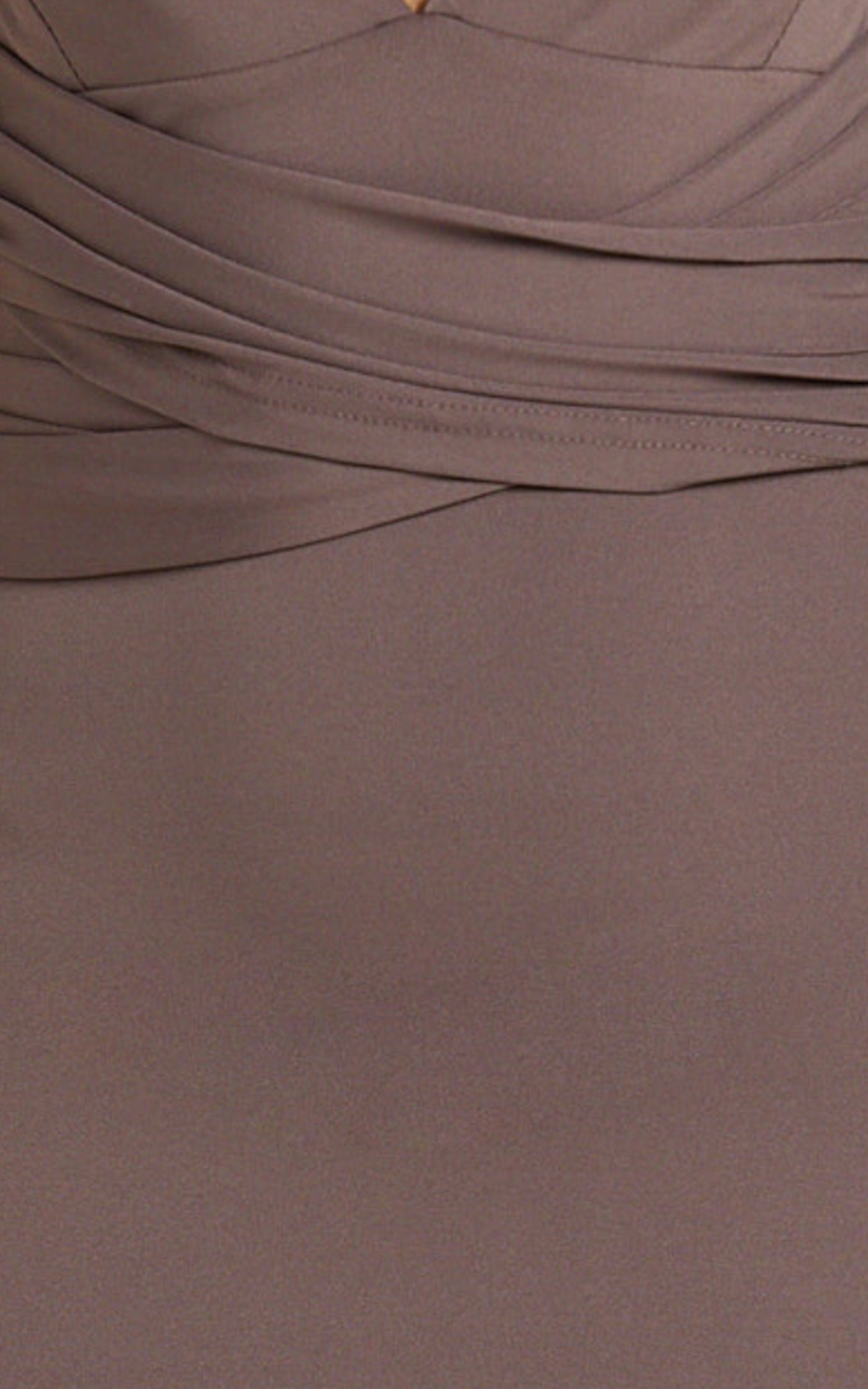 This wide-strap plunge bodycon maxi delivers a sleek, snatched silhouette with a deep neckline and a smooth, sculpting finish, perfect for date nights, events, and everything after-dark. The rich brown tone taps into Dark Brown energy while the clean lines keep it refined yet sultry.