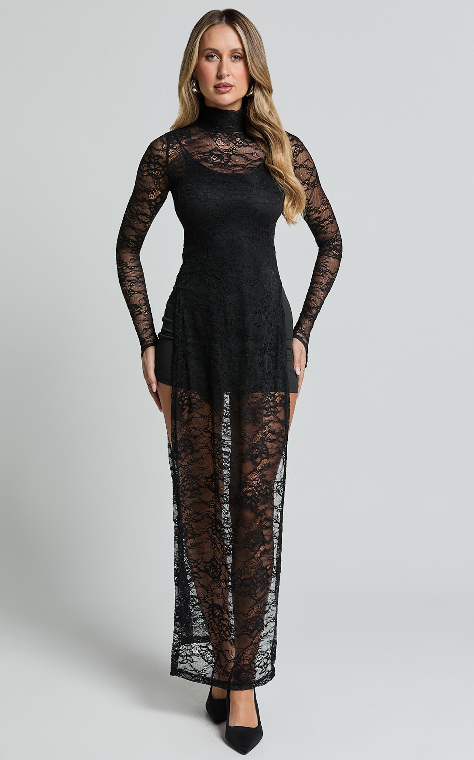 Unleash your inner fashionista with the Yvette Midi Dress! This stunning black slip dress is the perfect addition to your wardrobe, whether you're getting ready for a formal event or a night out with friends. With its high neck and long sleeves, this dress exudes elegance and sophistication. Made from luxurious lace and polyester materials, it not only looks fabulous but feels incredibly comfortable too. The midi length adds a trendy touch, making it suitable for all occasions. Get ready to turn heads and feel empowered in the Yvette Midi Dress - because every woman deserves to look and feel her best!